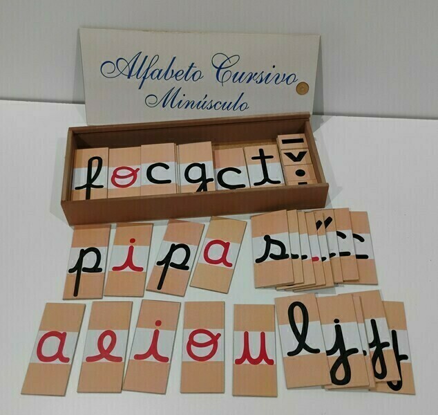 Ref. 116 - ALFABETO CURSIVO MINÚSCULO - Matéria-Prima: MDF – Medidas da caixa: 35cm x 16,5cm x 4,5cm Peças: 75.